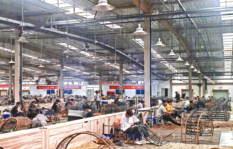 近日,记者走进中艺(河南)户外产业园看到,工人正在细心编织藤条座椅、桌面。该园是新蔡县重点招商引资项目,主要生产户外休闲用品(太阳伞、休闲桌椅及配件)和太阳能灯等,产品远销美国、加拿大、德国、法国等国家。