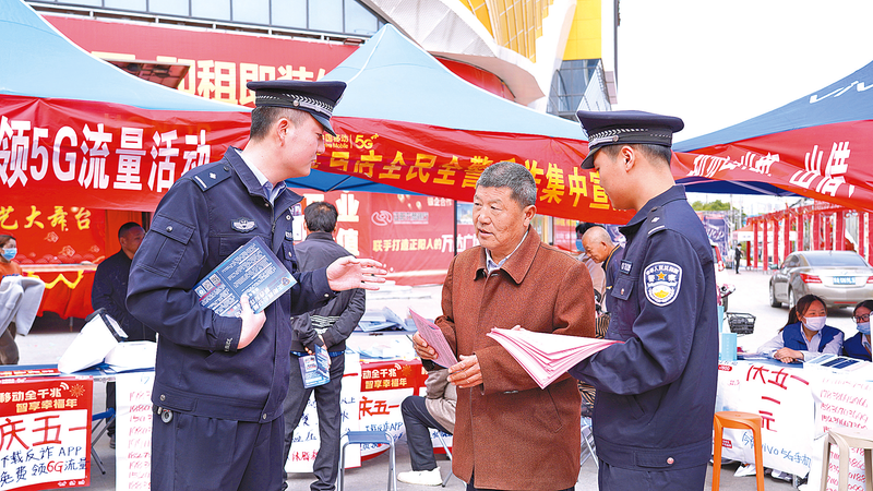 近日,正阳县公安局反诈中心联合真阳街道志愿者服务队、中国移动正阳县分公司,在县福聚明珠广场开展“反诈防骗 国家反诈中心APP与你同行”主题宣传活动。 通讯员 王 艳 摄