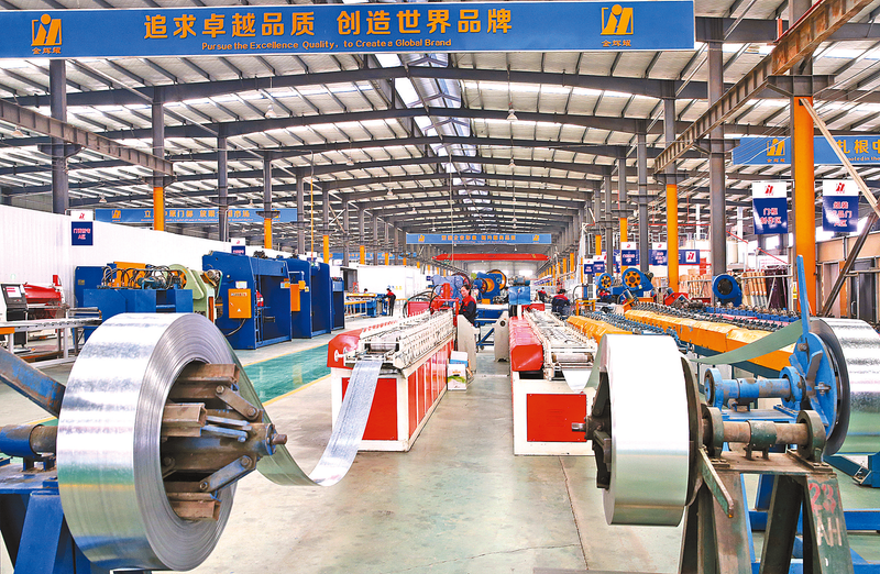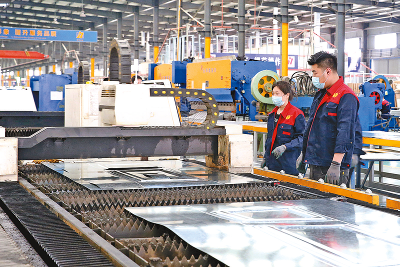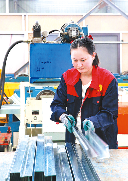 近日,在确山县金辉耀门业有限公司生产车间里,工人们正在赶制订单产品。
