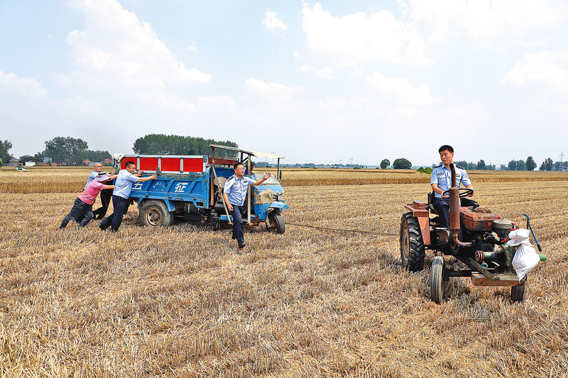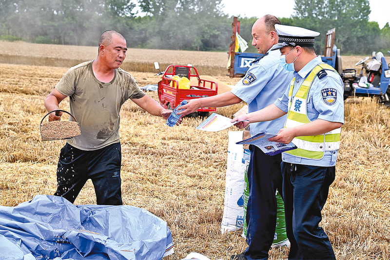 6月2日,西平县公安局交通管理大队组织民辅警走进田间地头,助力“三夏”。 通讯员 杜恩广 摄