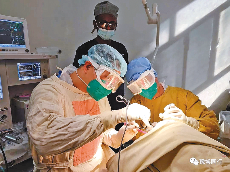 由于受援医院很多器械和材料短缺,他就自备明胶海绵及棉片,术中用骨科最小的克氏针钻孔,连接所有分离的骨片。术中见上矢状窦确已破裂,因准备充分、预判全面,该问题迎刃而解。此次手术医疗队队长张志韧担任一助,翻译宋文刚副教授台下协助,顺利完成第23批医疗队援外以来第一台手术。术后患者恢复理想,顺利出院。