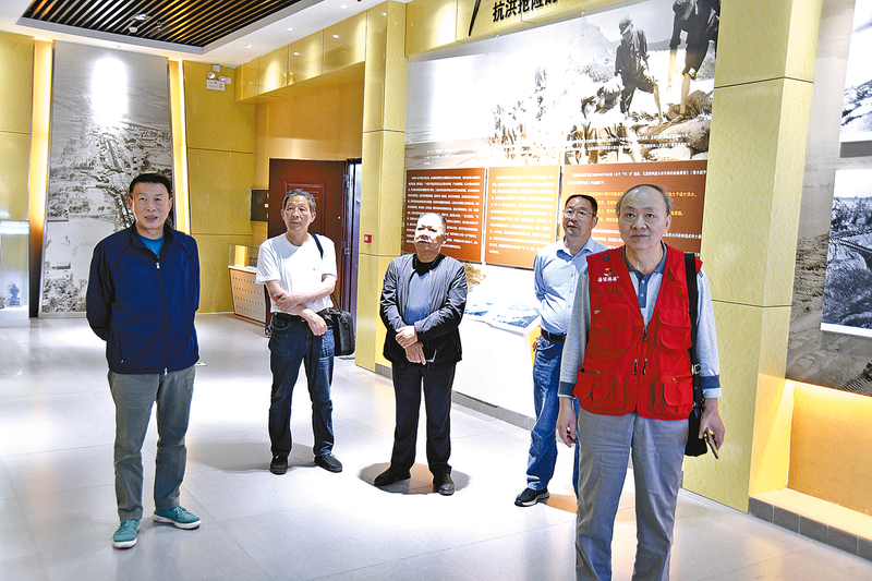 图为摄制组人员参观驻马店市防洪博物馆时的情景。