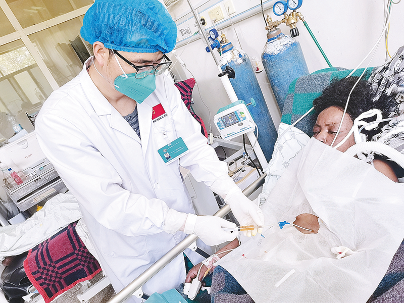 王远飞记忆深刻的一次外出诊疗,是挽救中资企业华人患者的生命。在埃塞俄比亚的中资企业一名中国籍员工,因急性心肌梗死,心源性休克入住当地一家就医环境相对较好的医院——爱菲医院。该患者生命垂危,用了几天升压药,但无论如何升压药撤不下来,这就意味着病人生命体征不稳定,随时有生命危险。该医院医生向中国医疗队寻求帮助,王远飞作为心内科医生,前往会诊义不容辞,经过4天2次会诊,完美撤下升压药,又经过1周治疗,患者康复出院。每次把患者从死亡线上拉回来,王远飞内心都无比的高兴。