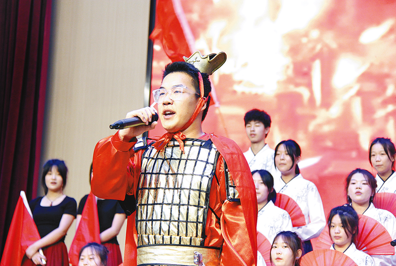 近日,驻马店技师学院组织开展“礼赞党的二十大 经典永流传”经典诵读活动,培养学生爱党爱国情怀,传承中华优秀传统文化,构建浓厚校园文化氛围。 本报记者 黄育南 摄