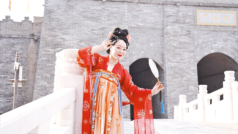 近日,一群汉服爱好者身着汉服在皇家驿站景区内拍照打卡,感受传统文化的魅力,在古风古韵中喜迎端午节的到来。本报记者 张 建 摄