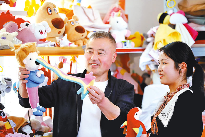 李文武向客商介绍出口欧美市场婴幼儿玩具。 人大代表不仅是一个光荣的称号,还是一种神圣的职责;不仅是村民信任的代言人,还是村民创业致富的带头人。驿城区人大代表、驻马店市丰采鑫玩具制造有限公司总经理李文武,近年来积极履行人大代表职能为村民办实事、说实话,带动更多留守妇女实现家门口就业创业,发挥了人大代表在共同致富道路上的带头示范作用。
