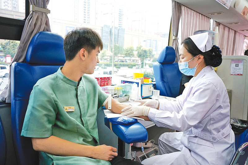 近日,市中心血站联合驻马店市亲情树餐饮有限公司开展无偿献血活动,以博爱之心,续写生命华章。据统计,当日驻马店市亲情树餐饮有限公司共有57人献血,献血量达19700毫升。 本报记者 王冰之 摄