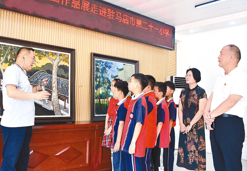近日,“杏坛绘丹青——黄圣生油画作品校园巡展”走进市第二十一小学,让全校师生零距离接触、认识中国油画。 本报记者 张 宁 摄