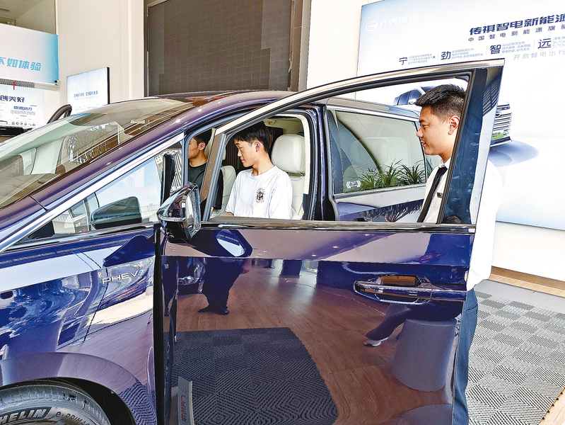 日前,在广汽传祺祥瑞旗舰店,传祺智电新能源E9外观造型时尚、内部空间够大,低能耗、高安全、长续航,销售火热。同时,该车以同级最低、且低于行业平均水平16.9%碳排放水平,荣膺C级插电式混合动力MPV冠军,被评为2023年低碳领跑者车型。