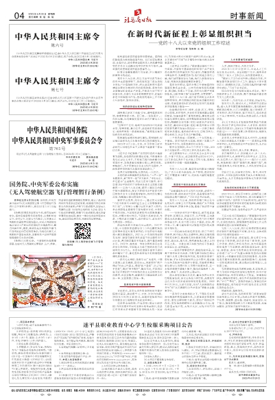 国务院、中央军委公布实施 《无人驾驶航空器飞行管理暂行条例》