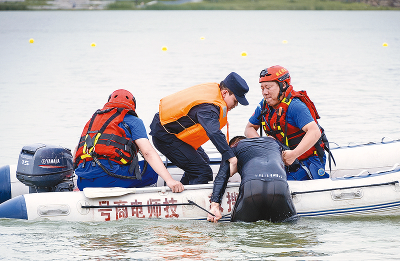 为全面检验和提升公安机关在防汛抢险救灾过程中的组织指挥能力、快速反应能力、应急处置能力,切实保障辖区群众生命财产安全和社会大局稳定,近日,开发区公安分局联合区消防救援大队、120急救中心、蛟龙水上义务搜救队在市人民公园开展水上救援应急演练。