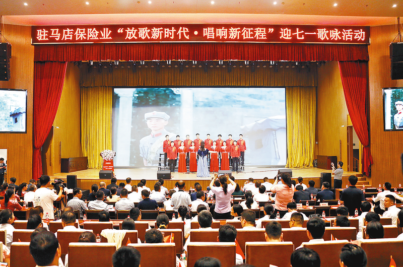 歌唱。 6月28日,驻马店保险业举行“七一”歌咏活动。全市27家保险机构组成16支演出队,300多人纵情放歌,把最美的颂歌献给中国共产党102岁生日,用歌声抒发感党恩、听党话、跟党走的决心,继承发扬党的光荣传统,坚定党的理想信念,展现新时代保险人昂扬向上的精神风貌。