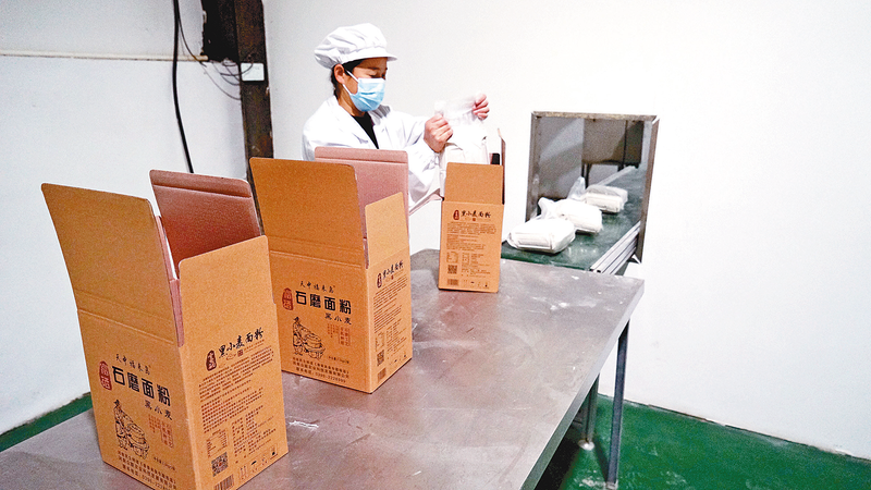 近日,河南众联农业科技发展有限公司员工在包装产品。该公司是一家种植、加工、销售黑小麦的农副产品企业,以“公司+基地+科技+农户”的产业化模式,打造绿色生态、健康养生的农副产品,带动周边农户增加收入。
