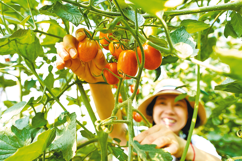 7月3日,市民在河北省唐山市路北区一处家庭农场内采摘樱桃西红柿。近年来,河北省唐山市路北区依托区位优势和农业特色,围绕农业供给侧结构性改革和乡村振兴,积极调整产业结构,培育和引进竞争力强的新型经营主体,不断推进城郊农业发展,有效拓宽农民增收渠道。 新华社记者 牟 宇 摄