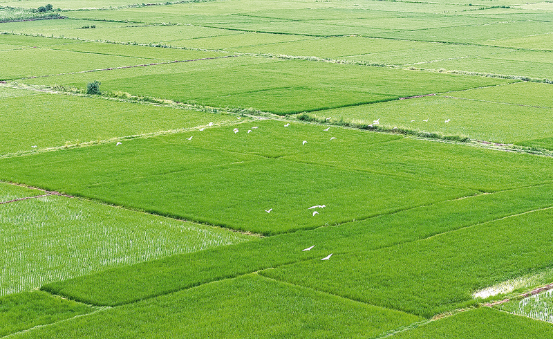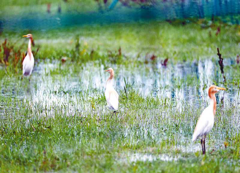 近年来,正阳县积极践行绿水青山就是金山银山理念,打造优良生态环境,吸引更多鸟类栖息。水田里,白鹭或觅食或翩翩起舞,成为一道亮丽的风景线。