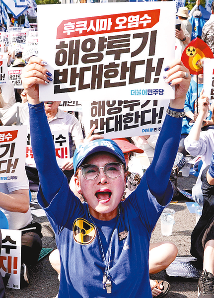 7月1日,韩国民众手持“反对向海洋排放福岛核污染水”字样的标语在韩国首尔参加集会。 新华社发 新华社日内瓦7月4日电 中国代表4日在联合国人权理事会第53届会议上指出,日方强推核污染水排海,以经济成本为由选择向海洋排放,等同于向全人类转嫁核污染风险,将引发全球海洋环境和公众健康重大问题,造成更大范围的流离失所问题,希望国际社会高度关注。