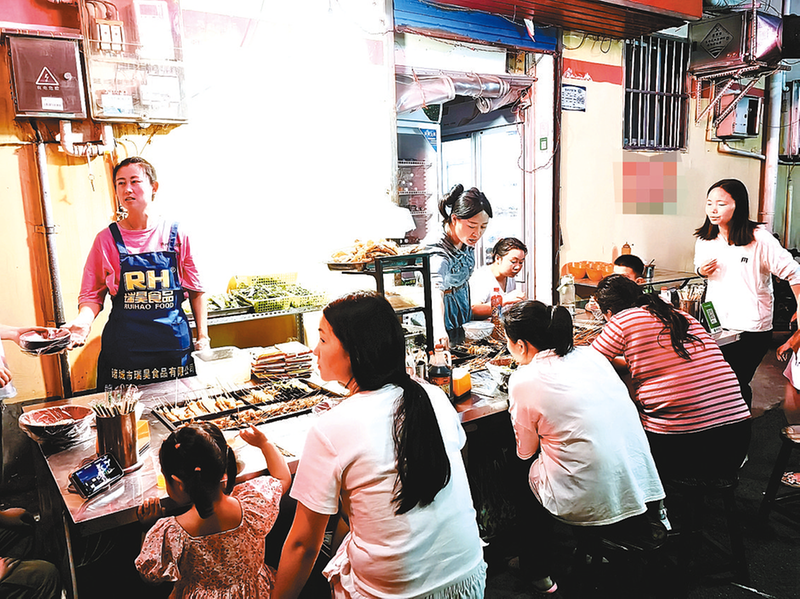 “馄饨放荆芥加辣,三位里面请!”“新鲜的烤鱼要不要尝一尝?”……6月20日晚7时,记者行走在驿城区的大街小巷,在驿城大道的“深夜食堂”,盘龙山路的巴厘小龙虾、旺角啤酒城,中华大道西段的燕子名吃广场、胖子羊肉串豆面条等夜市热闹非凡,小龙虾、烤鱼、羊肉串、麻辣烫、豆面条……各式各样的特色美食摊位前,吆喝声此起彼伏,各色亮眼招牌灯光交错,前来品尝美食的消费者络绎不绝,浓浓的城市烟火气升腾而起。