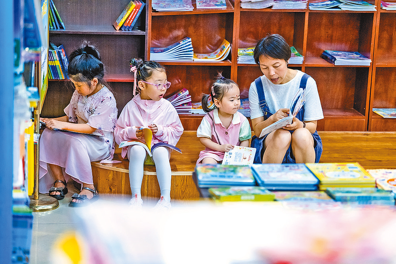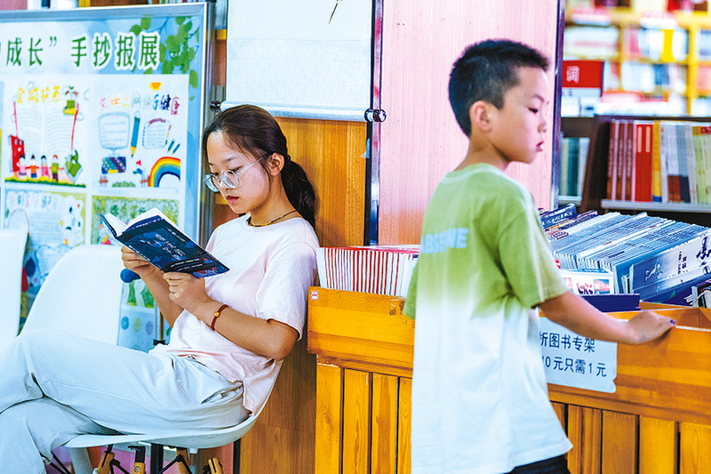 7月8日,西平县新华书店内,许多学生在家长的陪伴下选购、阅读书籍。同学们在浓浓的书香中度过假期,享受夏日美妙时光。