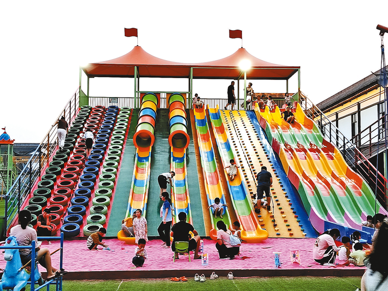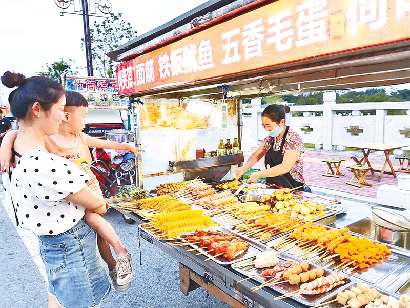 近日,记者在确山县城三里河畔看到,新修建的三里河文化公园两侧灯光绚丽、人来人往。夜幕降临,人们到河边散步休闲,游玩纳凉,熙来攘往中,充溢着浓浓的人间烟火气。