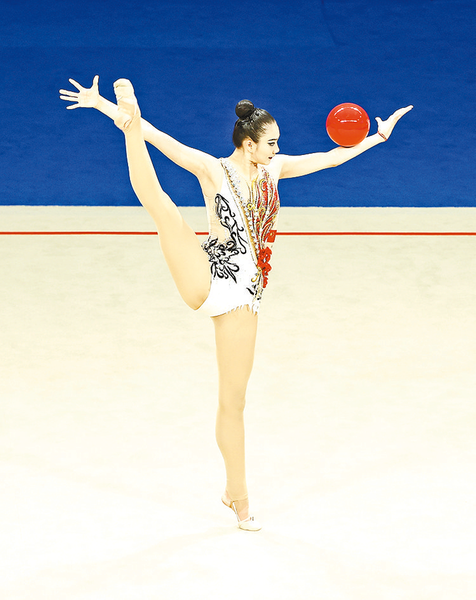 艺术体操:栗慧琳获得第四名 7月31日,中国选手栗慧琳在艺术体操项目个人球操决赛比赛中。新华社记者 张丽芸 摄