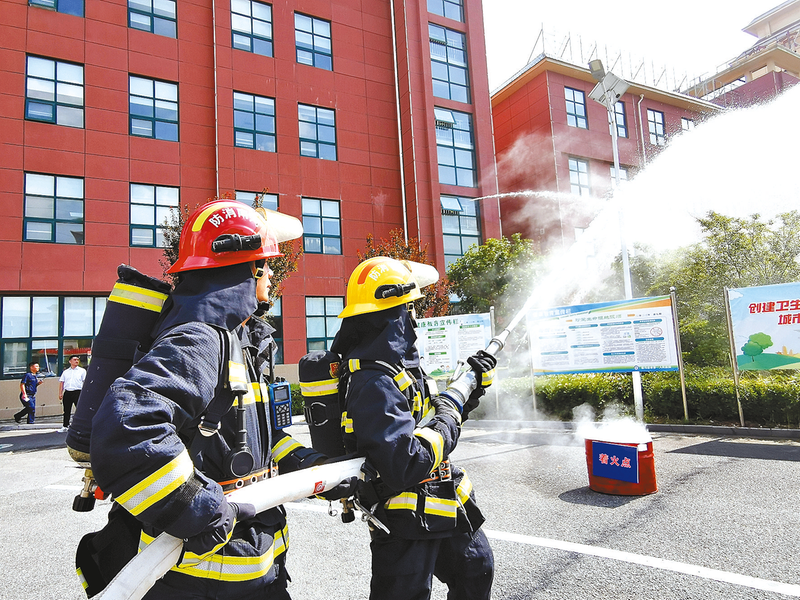 7月27日下午,驿城区卫健体委在市第一人民医院西区组织开展全区卫健体系统夏季消防应急演练。此次演练严格依照预案分为8个应急处置小组。 本报记者 王 捷 通讯员 邢小宝 摄影报道