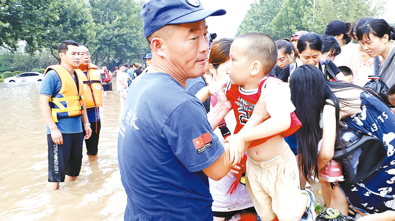 “我从小在宿鸭湖边长大,也曾几次参与抗洪救援,但从没在城区见过这么大的水。刚到的时候,看到街边的一些树已被水淹没,坐在冲锋舟上,穿过道路口的红绿灯线杆时,自己还要低着头。如果螺旋桨打到树木受损,自己也会被洪水困住,手机又没有信号。好在平时进行过救援训练,大家胆气十足。”张继光说。