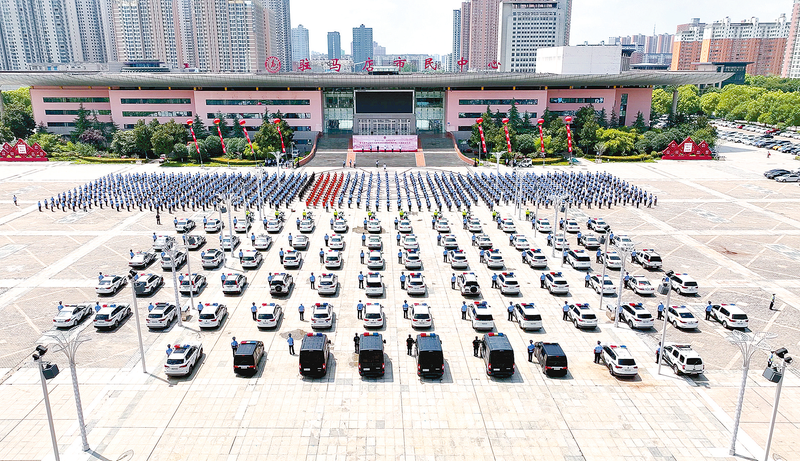我市公安机关夏夜治安巡查宣防集中统一行动启动仪式。 治安形势持续好转,群众满意度明显提升……在经济社会稳步、快速、高质量发展的同时,我市开展的平安创建活动也结出累累硕果。在干净整洁的广场、公园,处处都能见到步履从容、面带笑容的市民,他们享受着平安驻马店建设带来的安定幸福生活。