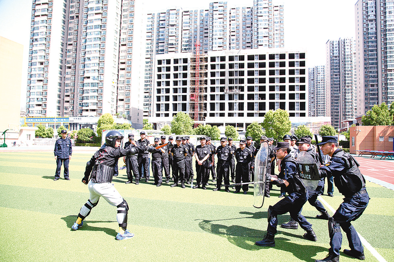 学校安保人员进行防恐防暴业务知识和技能培训。