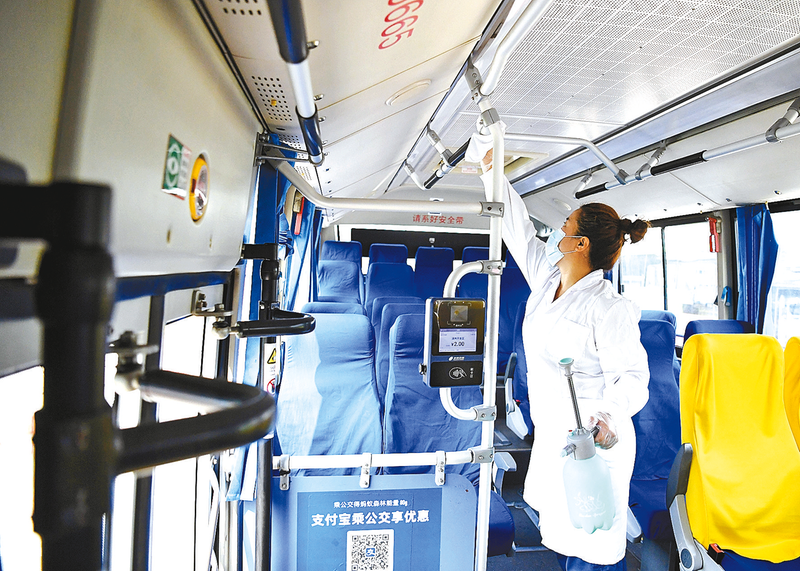 8月9日,河北省涿州市838路公交总站工作人员对车辆进行消毒。当日,北京公交838路(河北涿州开发区至北京六里桥)公交线路正式恢复运营。据悉,北京公交838公交线路是河北涿州和北京之间一条重要的跨省公交通勤线路。此前,受洪水影响,北京公交838路公交线路被迫停运。 新华社记者 朱旭东 摄 中央财政紧急预拨10亿元支持国家蓄滞洪区受灾群众尽快恢复正常生产生活秩序