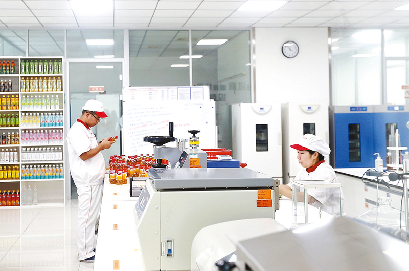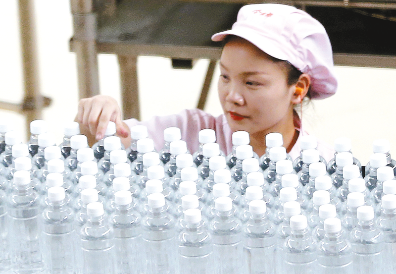 8月9日,在今麦郎(遂平)食品工业园的高速智能化饮品项目车间内,一瓶瓶凉白开快速在生产线上旋转,单条生产线1小时快速出水高达6万瓶。它是由世界制面业前三强、国家级农业产业化重点龙头企业今麦郎集团投资11.5亿元建设的。
