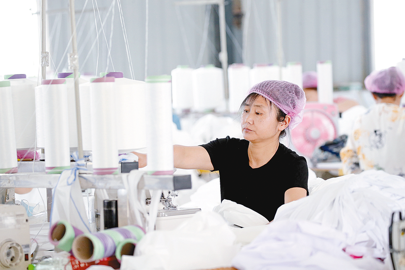 该公司主要生产各类防护服,工作按件记酬,上班时间灵活,还能兼顾家庭,周边60多名村民在家门口就业。