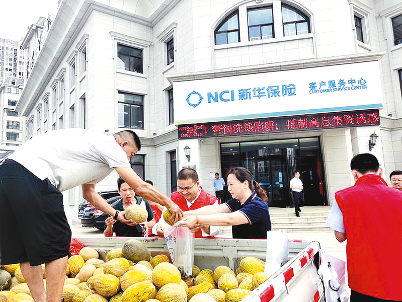 近日,新华保险驻马店中心支公司开展“爱心助农 新华保险在行动”志愿活动。活动现场,志愿者帮助瓜农装瓜、称重,并通过微信群帮助瓜农拓宽销路。