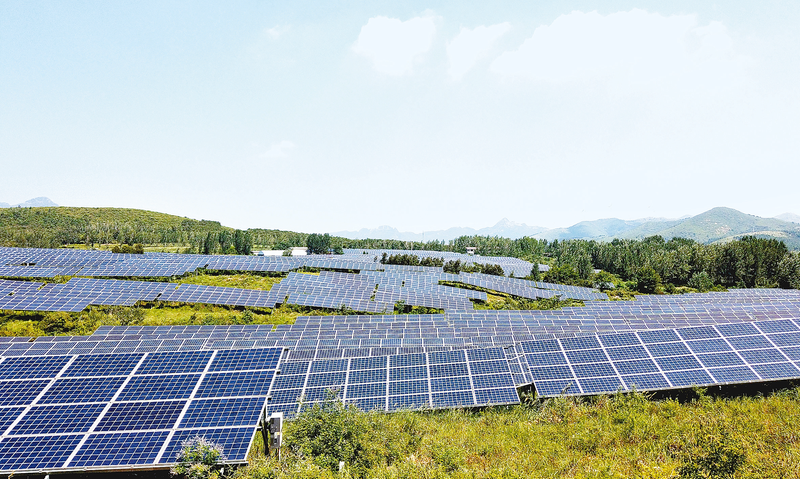 骄阳似火,站在一处半山腰举目眺望,一块块光伏发电板在阳光的照射下如蓝色宝石般熠熠生辉、蔚为壮观。