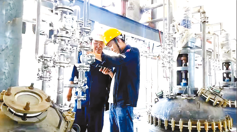 在生物医药产业园河南优凯制药有限公司化学原料药项目现场,工人正在紧张有序进行设备调试。