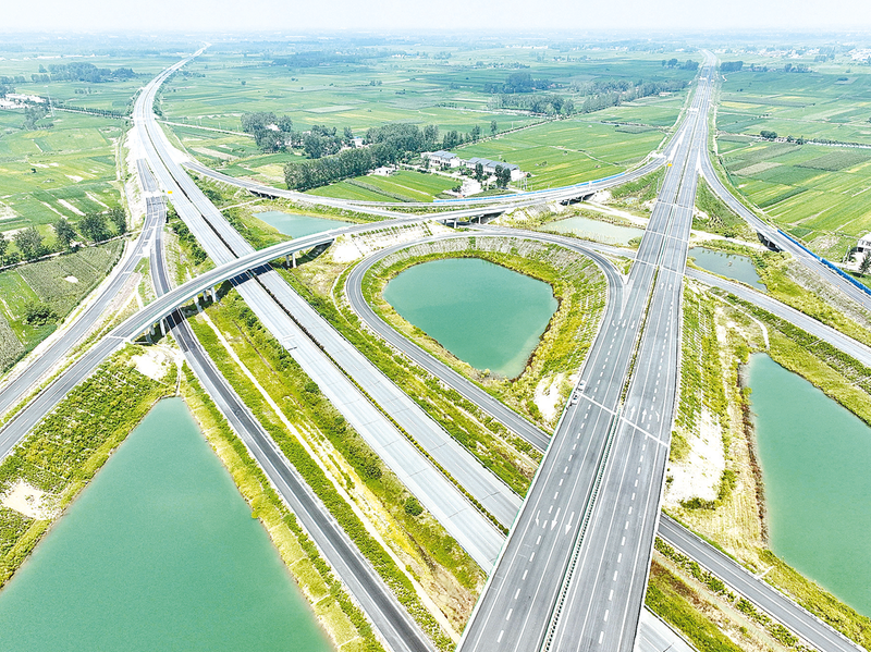 8月14日,航拍上罗高速公路驻马店正阳境永兴枢纽互通。