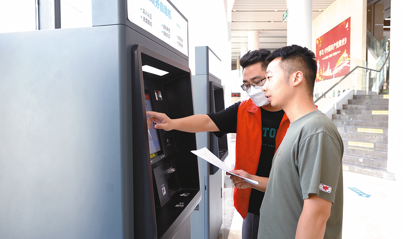 图为平舆县行政服务中心志愿者在引导群众办理业务。通讯员 李亚超 摄