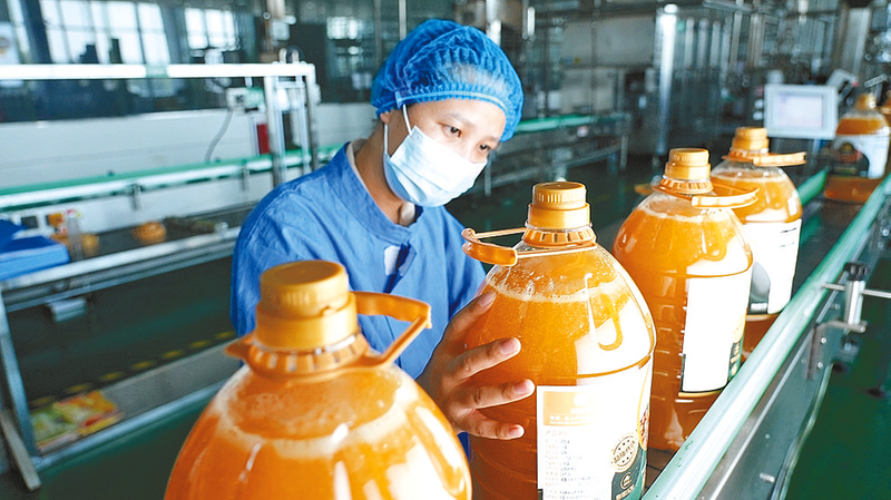 8月23日,在遂平县中花粮油(河南)有限公司生产车间内,工人正在对花生油产品进行检测。该公司是一家集科、农、工、贸于一体的食用油加工企业,以生产花生油、玉米胚芽油为主。该项目固定资产投资6.1亿元,项目流动资金1.9亿元,年产值15亿元,全部投产后年可实现利税8000万元。本报记者 张 建 摄