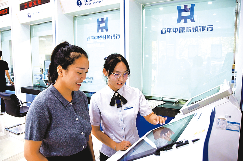 近日,西平县政银合作智能审批启动仪式在西平中原村镇银行举行。启动仪式结束后,个体工商户代表在工作人员的指导下,现场在智能审批设备上操作申请营业执照。