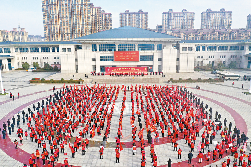 新时代文明实践推动周活动启动现场。 公园广场鲜花盛开,城市书房书声琅琅,背街小巷幽静明亮,集贸市场干净整洁,老旧小区面貌一