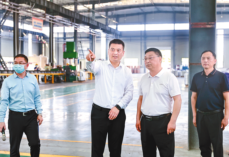 驿城区委书记冯磊(左二)深入重点企业调研。