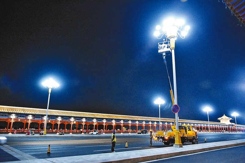 9月3日,工作人员对市区主干道路灯进行检修更换,迎接盛会召开。 本报记者 田 久 通讯员 黄文静 文/图