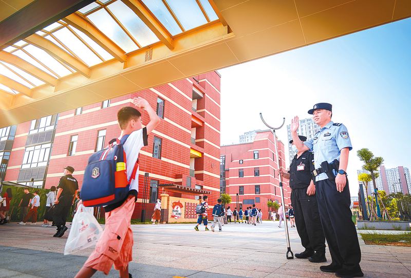 为切实做好新学期校园安全工作,维护校园及周边良好治安秩序,全面消除各类安全隐患,连日来,全市公安机关周密部署,扎实推进,全面强化各项安保措施,确保全市校园及周边治安秩序持续稳定,全力为新学期校园安全保驾护航。 开发区公安分局民警站好护学岗。 通讯员 张 珂 摄 西平县公安局民警查看校车日常记录。 平舆县公安局民警深入中小学开展安全检查。 通讯员 杜恩广 摄 驿城公安分局民警到幼儿园进行宣传。 通讯员 刘 威 摄 通讯员 黑 晓 摄