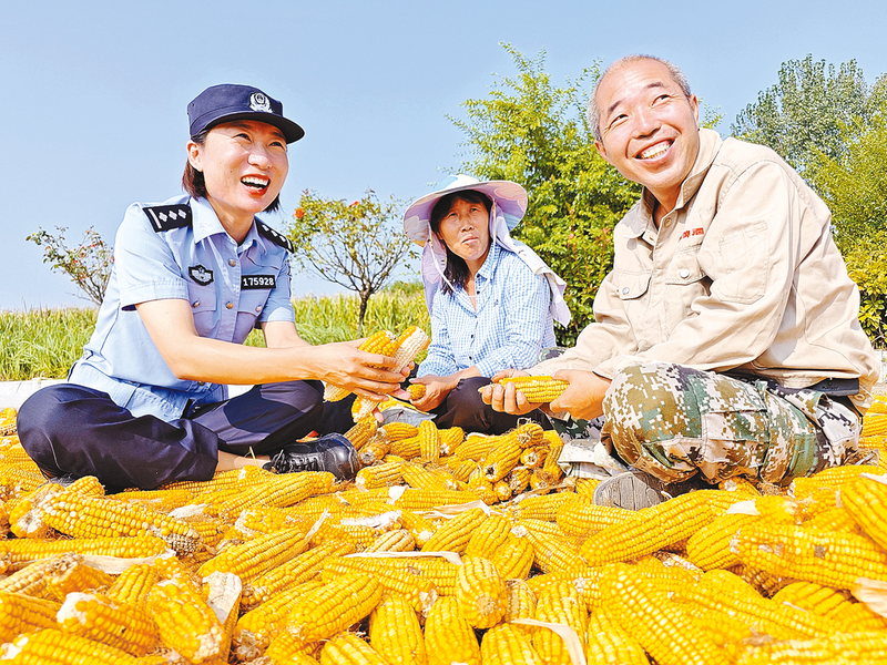 9月14日,正值秋收时节,田间地头一派繁忙景象,群众的脸上洋溢着丰收的喜悦。为避免群众一年来的辛苦付出不受损失,驻马店市公安局经济开发区分局关王庙派出所民警帮群众收玉米,在谈收成、唠家常中把反诈知识送到群众身边,以实际行动助力群众安全秋收。