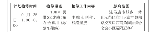 国网驻马店供电公司计划检修公告