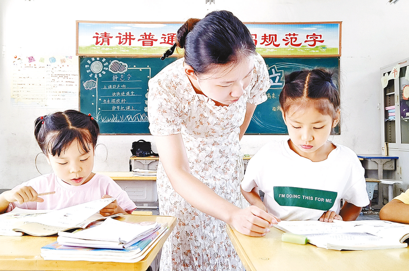 2021年,付金璐从商丘师范学院毕业后,考上了特岗教师,被分配到汝南县东官庄镇苗庄小学。“人生第一次正式站在讲台上,面对班里的12个孩子,我紧张地在黑板上写下自己的名字。转身那一刻,孩子们眨巴着眼睛投来灿烂的笑容。大概他们对于我这个新老师充满了探索欲,整堂课下来,他们都聚精会神地看着我,希望从我身上能给他们带来不一样的世界。”付金璐腼腆地说起她自己第一次站在讲台时的情景,至今仍记忆犹新。