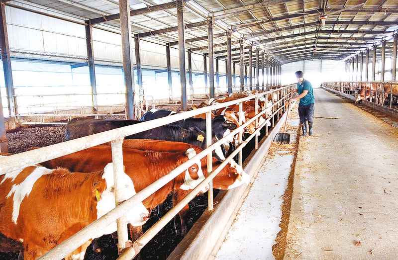 大兴村的常兴牧业公司养牛场,以肉牛育肥和繁育为主,自繁自养,现存栏肉牛900多头。本报记者 弓华静 摄 秋天,是一个成熟美好的季节。走进遂平县常庄镇大兴村,一望无际的田野里,大片大片的玉米、花生郁郁葱葱,在秋阳高照之下,显着生机、透出成熟,与掩映其中的一排排整齐的牛舍构成了一幅时光静美的田园诗画。