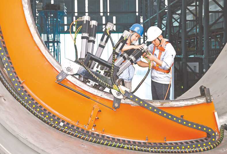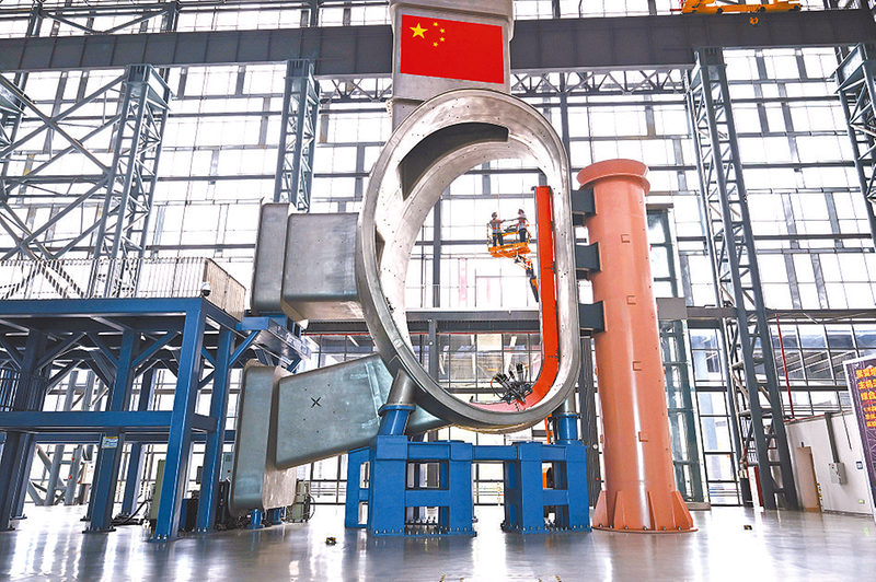 9月15日,工作人员在聚变堆主机关键系统综合研究设施(CRAFT)1/8真空室及总体安装实验平台进行设备调试。新华社记者 周 牧 摄