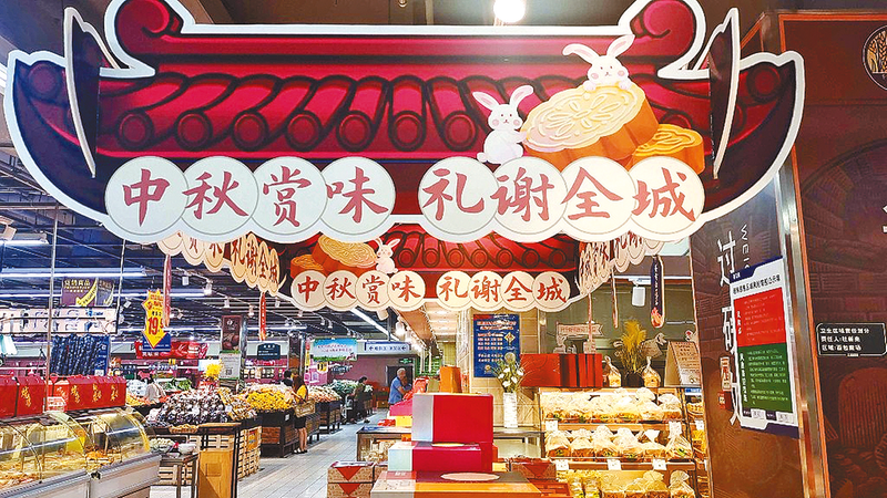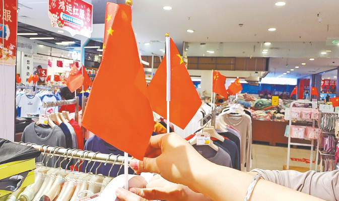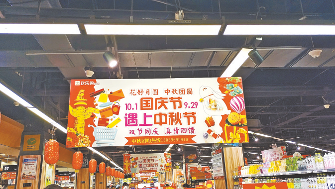 中秋节、国庆节将至,连日来,市区各大商超精心布置柜台、在店内挂起国旗和装饰品,营造浓厚的节日氛围,同时积极组织货源,保障“双节”消费市场供应。本报记者 刘金霞 摄