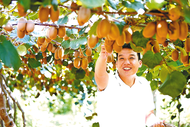 9月16日,种植户在新蔡县砖店镇大宋庄村猕猴桃产业园采摘猕猴桃。为带动产业发展,大宋庄建立200亩猕猴桃产业园,历经3年打理,从小树苗到个个颗粒饱满的猕猴桃挂满枝头,迎来了丰收季。