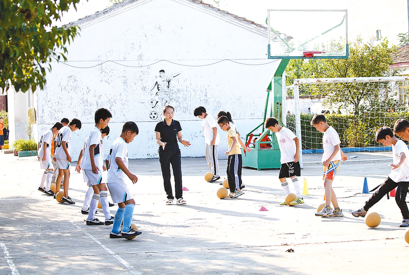 体育课上,胡振鹏从零开始,耐心给孩子们讲解足球运动规则和技巧,手把手训练;体育课时间不够,就利用课间、午后和放学后;操场上备了一批足球,队员们随时练习颠球、运球、射门技巧。王芳从体育专业读研毕业后,一路追随胡振鹏到了郑寨小学,足球事业成了夫妻俩共同的事业。